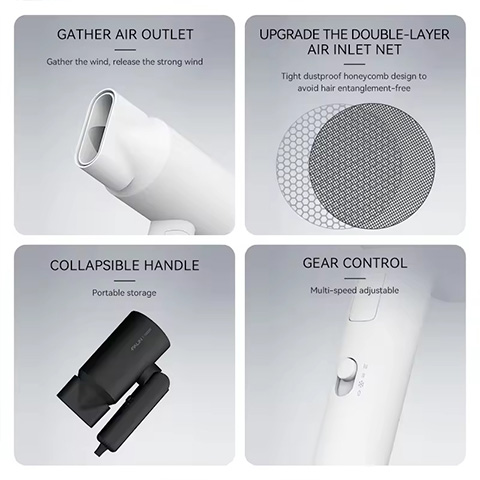 Double Back Net + Double Air Nozzle Foldable Hair Dryer